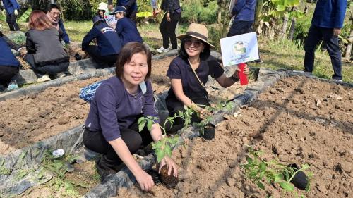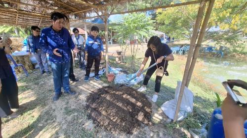 - ภายหลังการประชุม ผู้เข้าร่วมกิจกรรมได้ร่วมกิจกรรมเอามื้อสามัคคี เรียนรู้ฐานการปฏิบัติ ได้แก่ ฐานการปลูกผักสวนครัว ฐานห่มดิน และฐานปุ๋ยหมัก เพื่อเสริมสร้างความรู้และทักษะด้านการพัฒนาพื้นที่เรียนรู้เชิงปฏิบัติ
