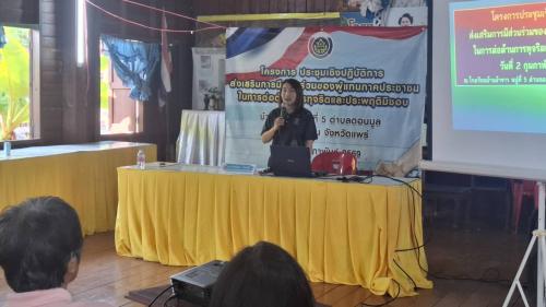 เพื่อพัฒนาความรู้ ความเข้าใจของภาคประชาชนในการร่วมกันต่อต้านการทุจริตและประพฤติมิชอบในพื้นที่หมู่บ้าน ตามหลักสูตรต้านทุจริตศึกษาและหลักสูตรส่งเสริมการมีส่วนร่วมของผู้แทนภาคประชาชนในการต่อต้านการทุจริตและประพฤติมิชอบ ปลูกและปลุกจิตสำนึกการเป็นพลเมืองที่ดีและมีวัฒนธรรมสุจริต และส่งเสริมภาพลักษณ์และสร้างทัศนคติที่ดีของการปฏิบัติงานภาคราชการในปัจจุบัน