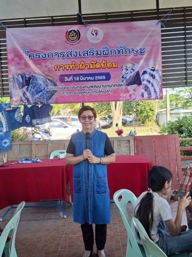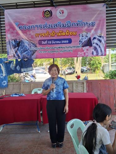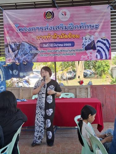 ทั้งนี้ ได้รับเกียรติจากคุณเกษณี ชื่นบาน วิทยากรผู้เชี่ยวชาญ เป็นผู้ให้ความรู้ในการฝึกปฏิบัติ โดยผู้เข้าร่วมโครงการได้ฝึกปฎิบัติการมัดย้อมเสื้อและผ้าพันคอ ซึ่งได้รับความสนใจจากผู้เข้าร่วมโครงการดังกล่าวเป็นอย่างมาก